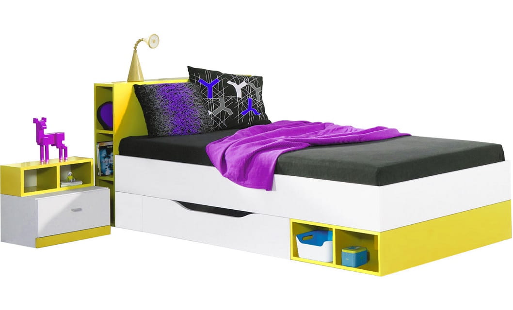 MOBY Eenpersoonsbed wit/geel Kinder Meubels 24