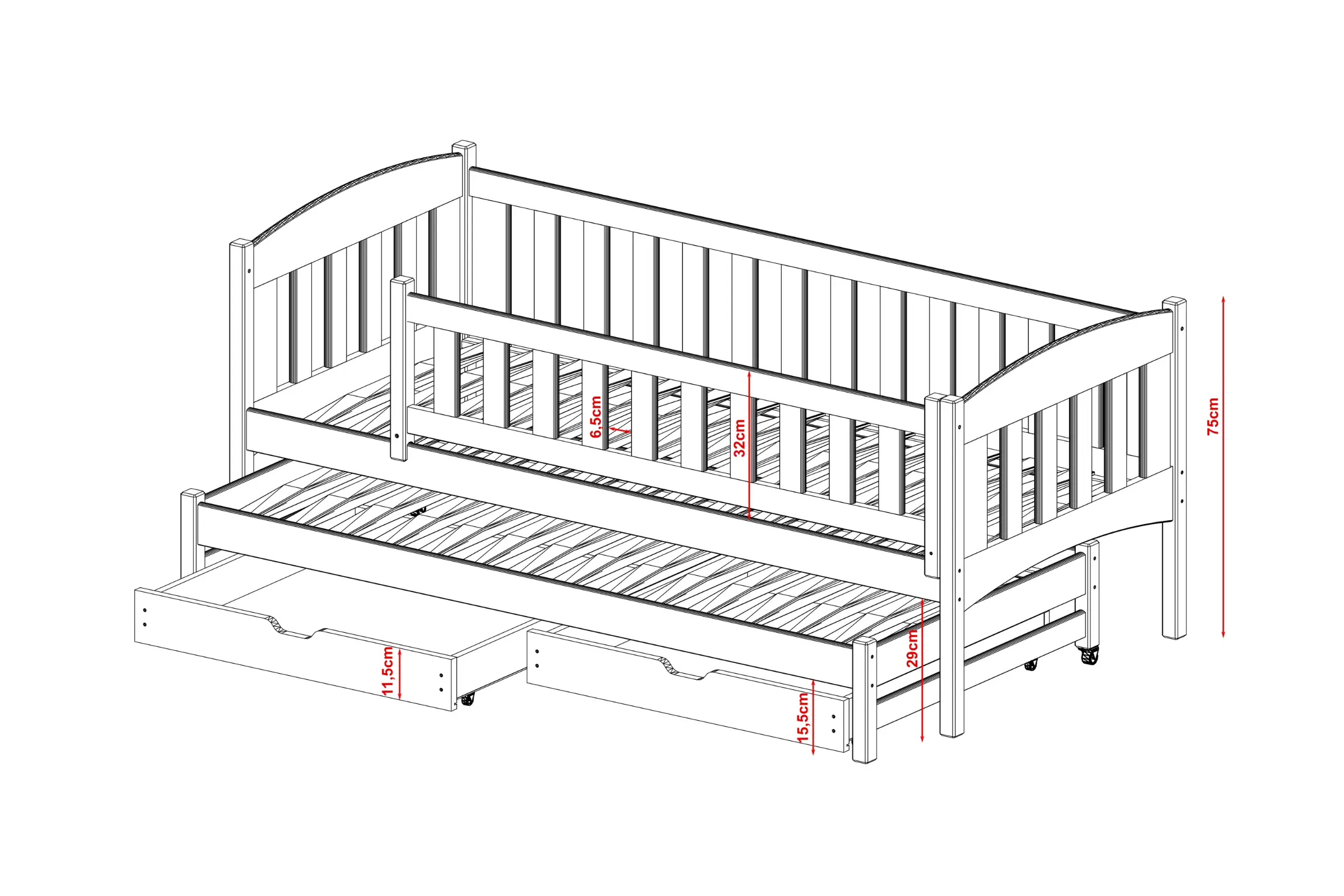 Het witte uitschuifbed AMELIA is ideaal voor kinderen die graag vrienden of familie laten overnachten. Met zijn slimme ontwerp biedt het een extra slaapplaats zonder veel ruimte in beslag te nemen. Twee uitschuifbare lades bieden extra opbergruimte voor kussens of dekens. De hoge veiligheidsbarrières zorgen voor maximale veiligheid, terwijl de lage constructie het risico op letsel minimaliseert. AMELIA is de perfecte oplossing voor kleine kinderkamers met grote functionaliteit.