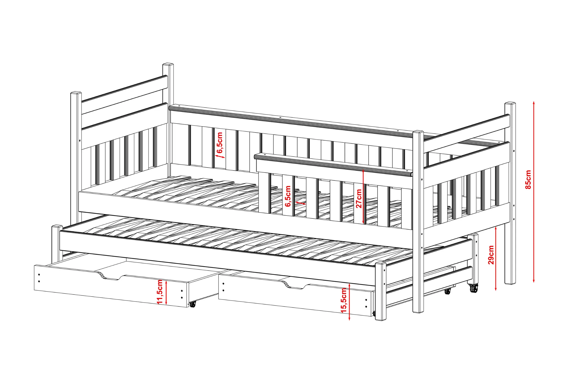 Kinderbed DENIS 90x200 met uitschuifbed – ideaal voor de kleintjes