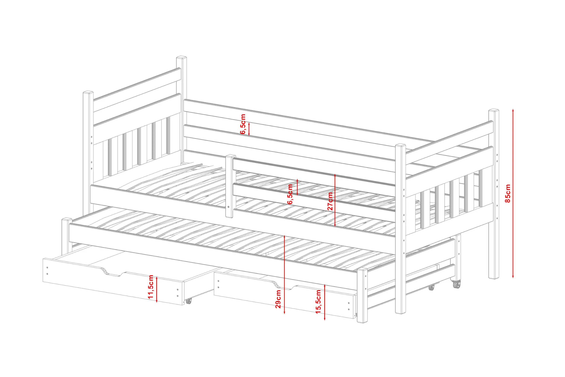 - Praktisch: Laden bieden opbergruimte voor speelgoed en beddengoed.
