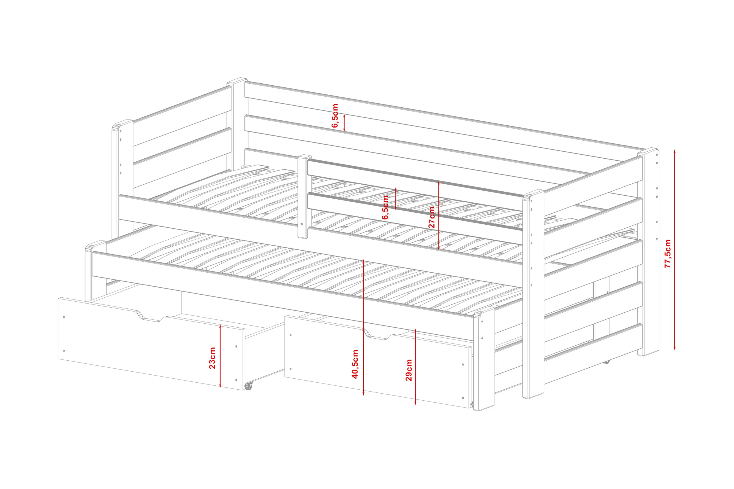 Het Stapellbed SENI 90x200 is de perfecte combinatie van functionaliteit en veiligheid voor twee kinderen. De robuuste dennenhouten constructie en de extra opbergruimte bieden een ruimtebesparende oplossing voor kleinere kinderkamers. De uittrekbare slaapplaats zorgt voor flexibiliteit en maximaal comfort.