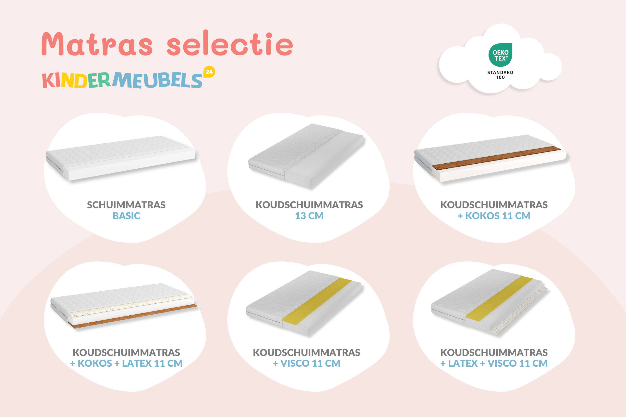 Opmerking: Matrassen zijn niet inbegrepen in de basisprijs, maar kunnen apart worden aangeschaft. Meer informatie over matrassen vindt u in onze categorie „Matrassen voor kinderen“.