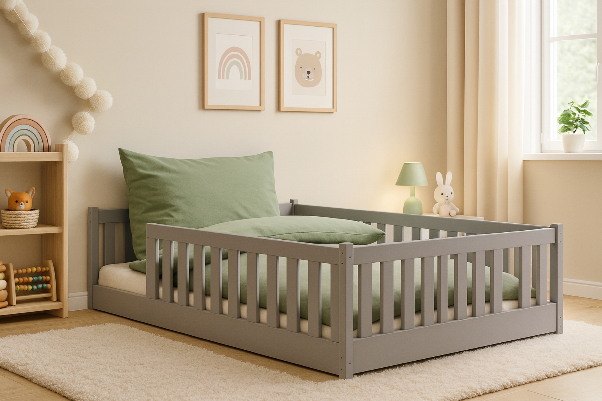 BELMO, met tijdloos ontwerp in Scandinavische stijl, past perfect in elk interieur. Het lage, veilige bed met beschermhekken biedt comfortabele slaap- en speelruimte.