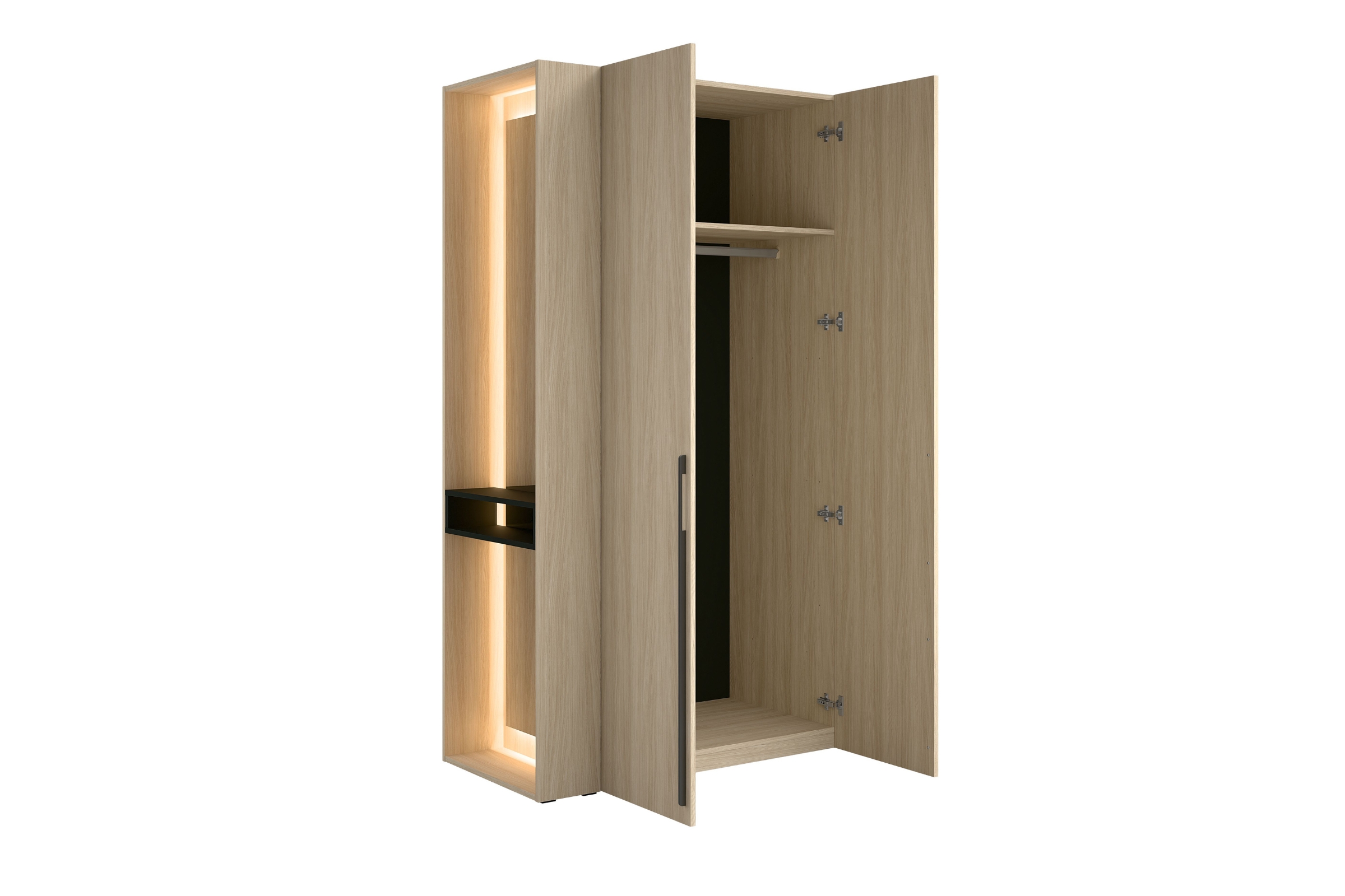 BERTA garderobekast 110 cm met spiegel en LED, kledingkast in eiken Barista