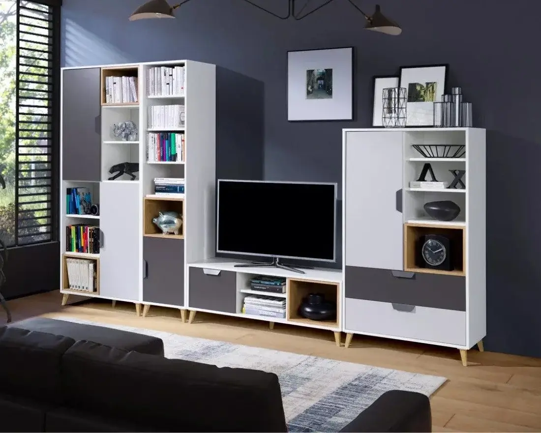 • Uitvoering: Een deurvak, twee lades en vier open vakken bieden optimale opbergruimte.