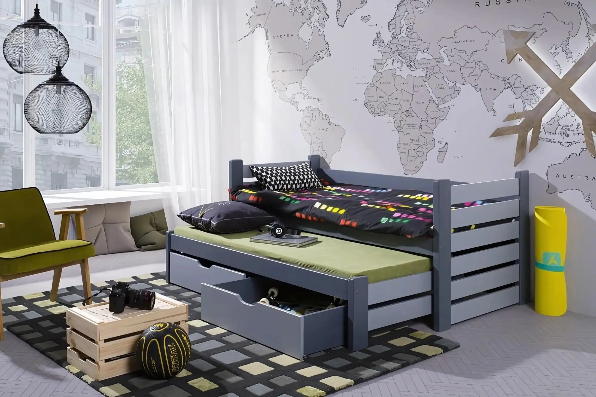 MATTI 90x200 Grijs + Grafiet Kinderbed Uitschuifbed met Laden Kinder Meubels